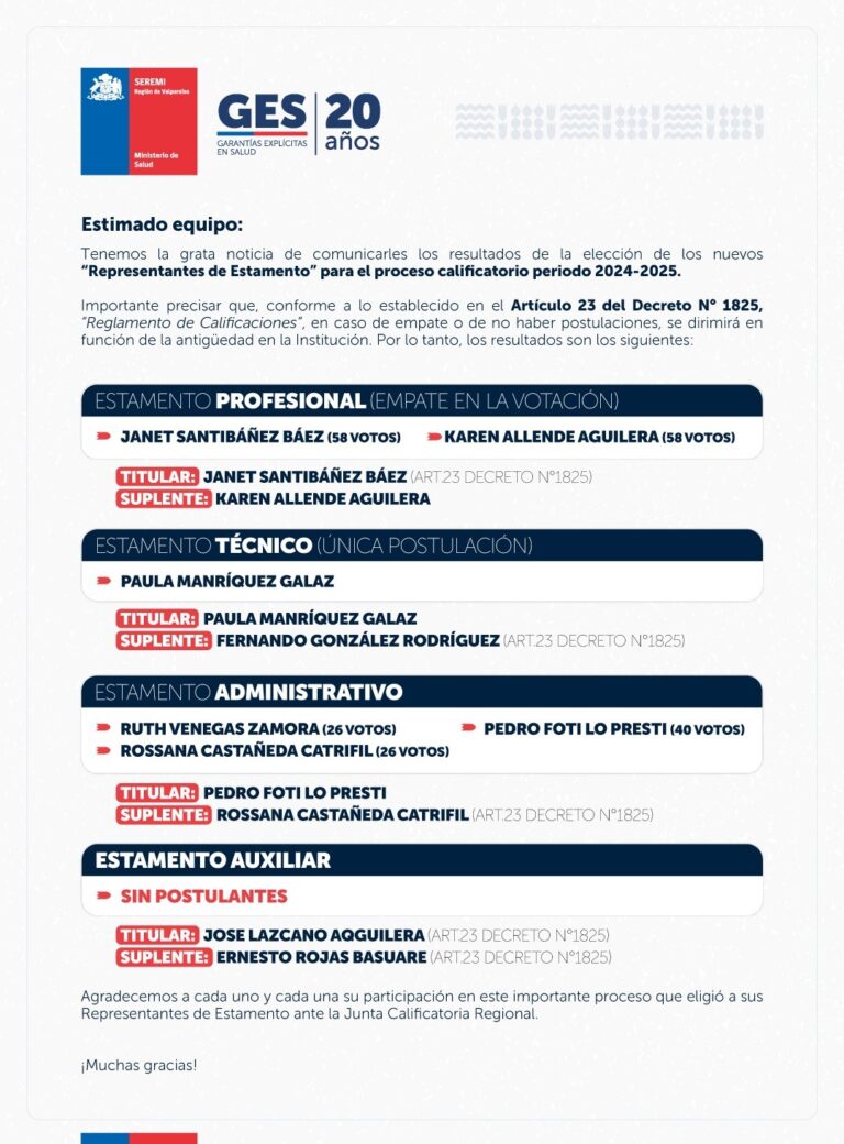 Nuestras felicitaciones a Janet Santibáñez, ilustre asociada y ex presidenta AFUSSAV, Pedro Foti, Tesorero AFUSSAV, y a la funcionaria Olga Urbina por el resultados de la elección de la Junta Calificadora de la SEREMI de Salud Valparaíso, FELICITACIONES