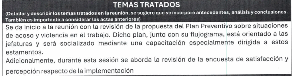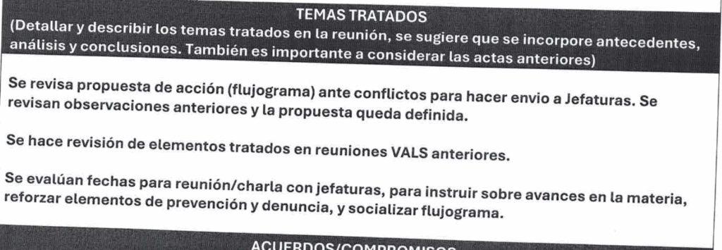 En base a lo acontecido en dicha reunión, se acuerda en trabajar en el rol preventivo del protocolo y en próxima reunión del 04.09.24 se presentarán propuestas. En dicha reunión participa la Autoridad, Jefaturas y gremios